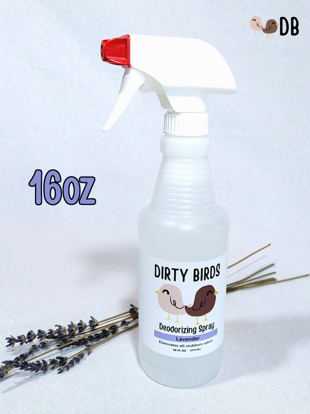 Dirty Birds Deodorizing Spray is an all-natural, water-based deodorizer for all types of sports equipment and fabrics. Our unique formula deodorizes fabrics and foam without leaving residue or residual smell, and won't harm your expensive gear.